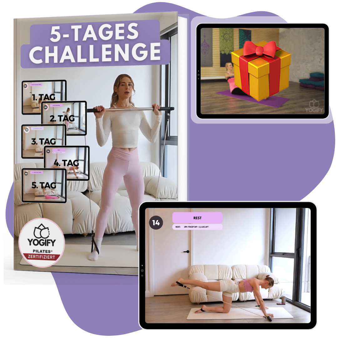 Mit dem Yogify 5-Tage Challenge Videokurs bekommst du eine intensive und strukturierte Trainingseinheit, um deine Pilates-Routine zu stärken und neue Fortschritte zu erzielen.